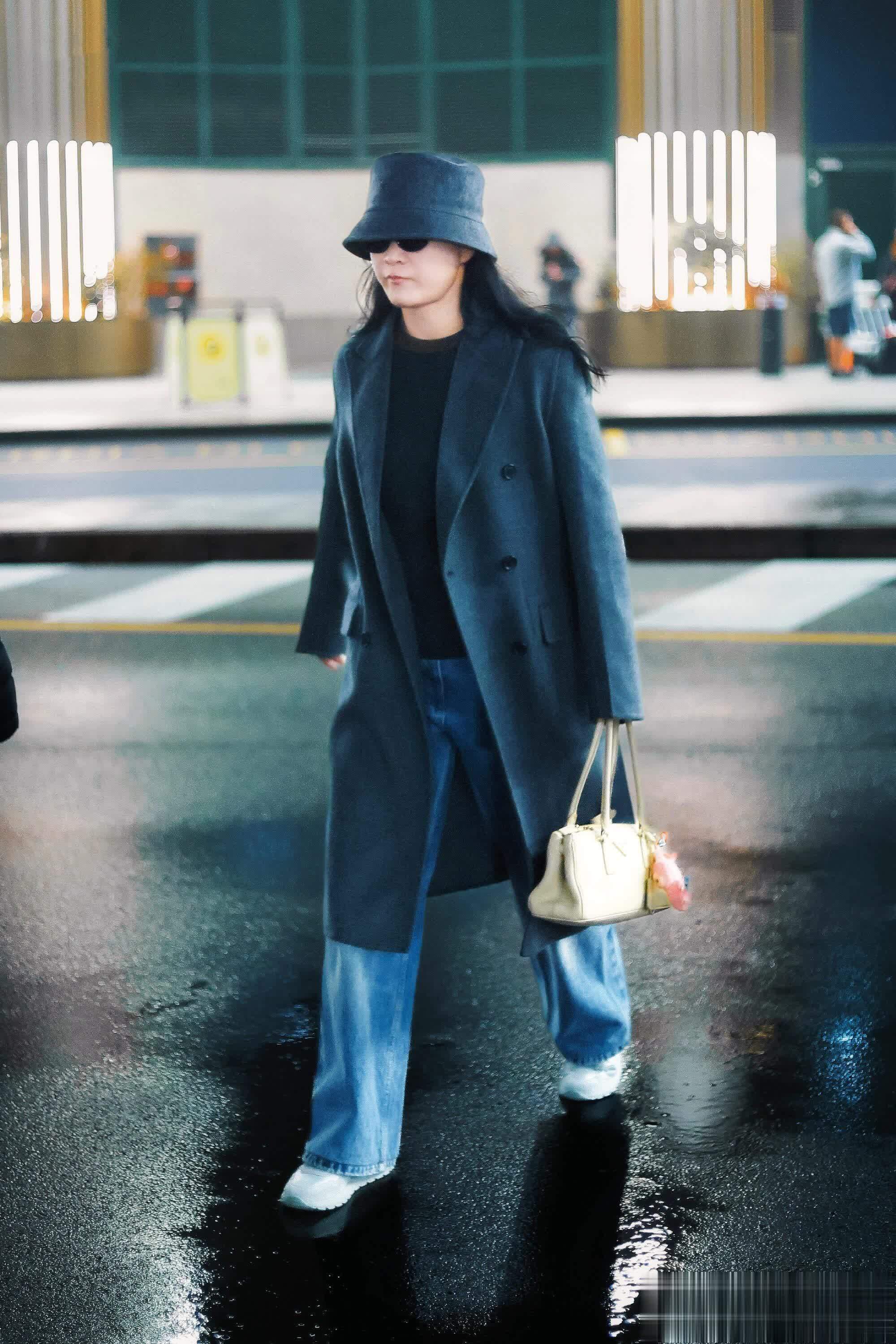 只见在路透里,贾玲身穿灰色大衣搭配牛仔裤和同色系渔夫帽,整个穿搭非常休闲。